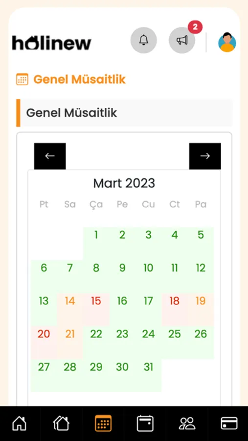 Holinew rezervasyon süreçleri, opsiyonlama, müsaitlik takvimleri ve geçmiş işlemler ile ilgili detaylı raporlama imkanı sunar.