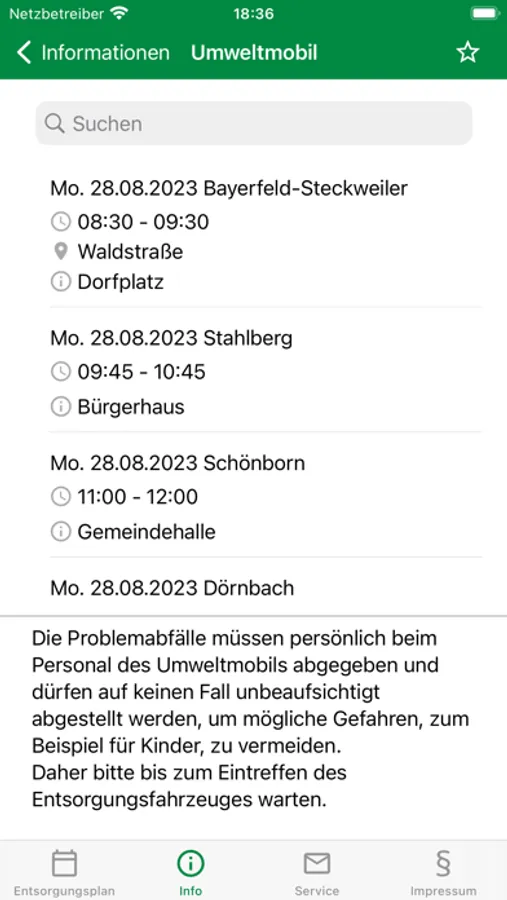 - Umweltmobiltermine - mit Erinnerungsfunktion