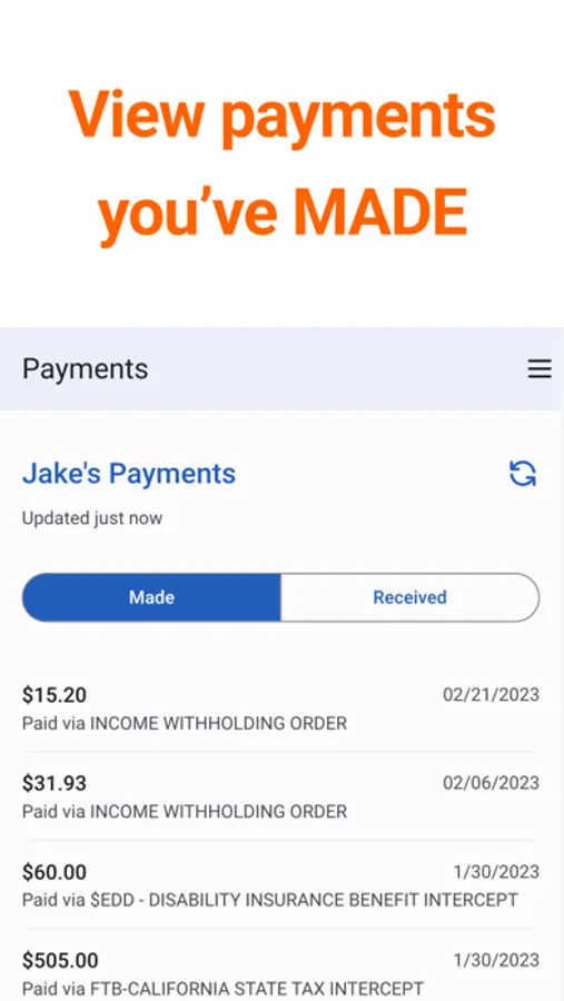 The first free app to track your Child Support payments and case info in California and Texas. View payments you have made as a non-custodial parent, payments you have received as a custodial parent, and the monthly/total balances on your open cases.
