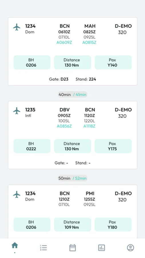 - Link to live status of aircraft (tap on registration)