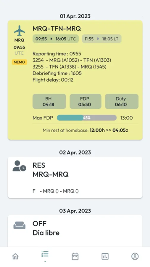 - Max FDP check according to EASA rules - check if you will exceed the limits