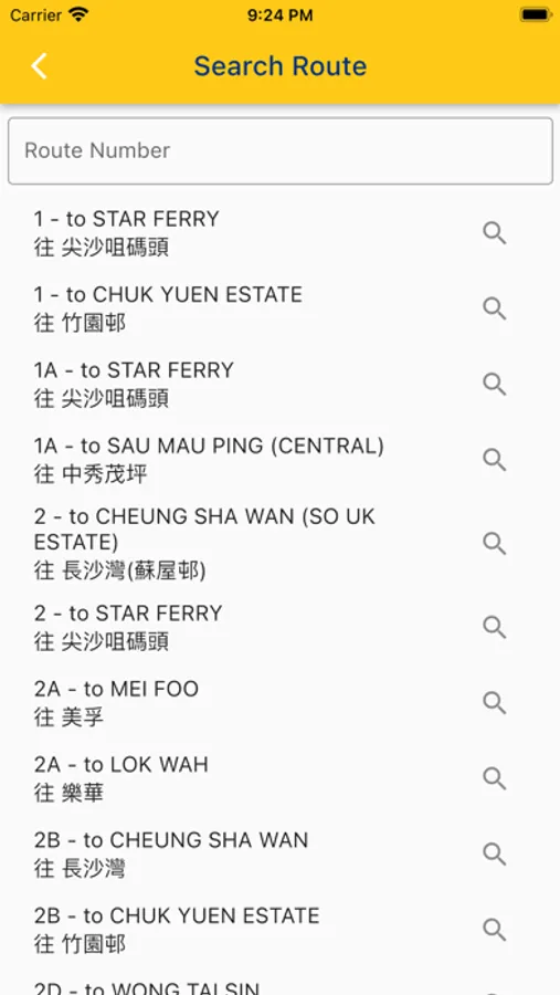 - By clicking "magnifier" button in a bus route page, searching bus stops in a bus route