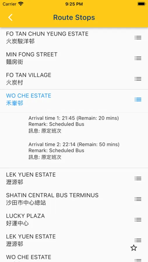 - By clicking bus stop in bus route page, the application fetches Estimated Arrival Times(ETAs) for buses in the route