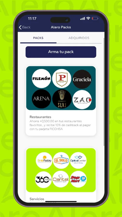 ALERO podrá adquirir PRODUCTOS y SERVICIOS. Los productos y servicios podrán ser; comida, bebidas, dinero en efectivo, medicamentos, artículos de venta en supermercado, tiendas de conveniencia y/o cualquier otro producto o servicio lícito que se encuentre en el comercio.