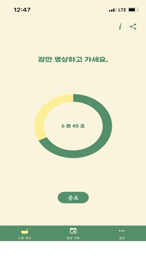 - 부드럽고 편안하게 호흡하면서 명상 타이머가 종료될 때까지 호흡에 집중하며 '소함' 만트라를 반복해요.