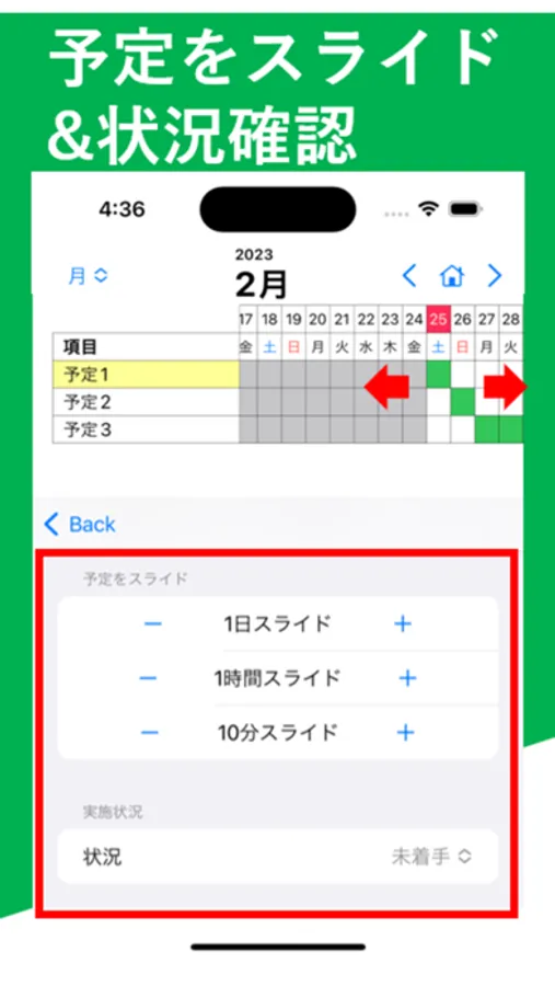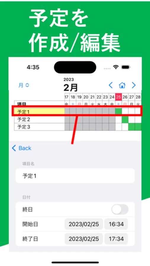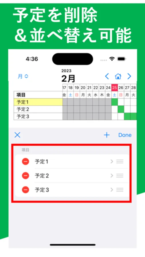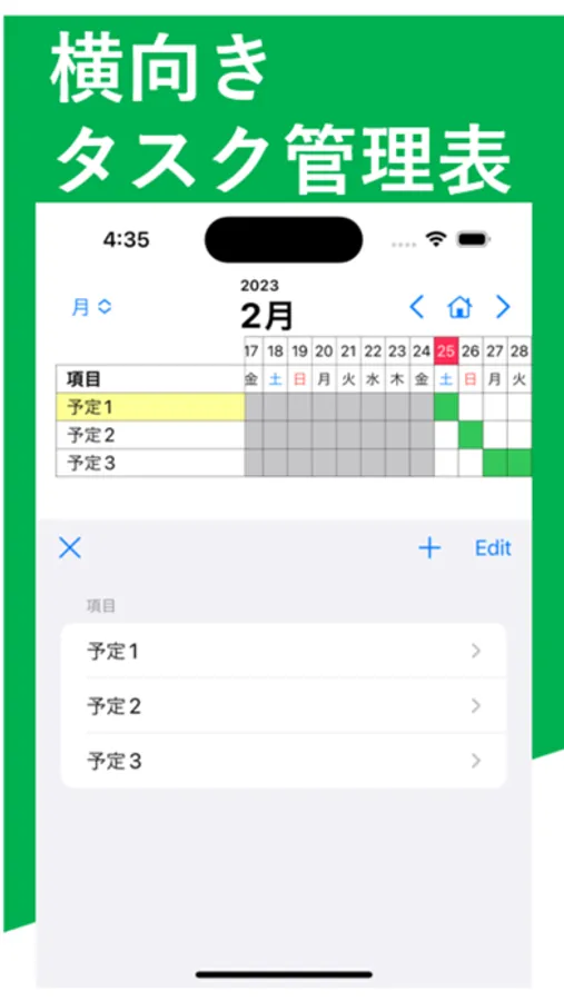日、月、年ごとのタスクを日程表として管理することが可能。