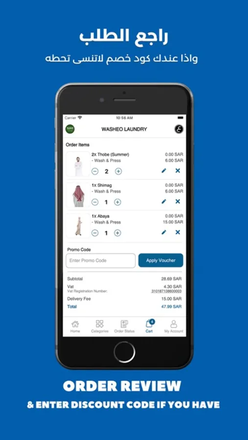 لن تحتاج لزيارة المغاسل التقليديه بعد اليوم وإهدار وقتك الثمين، مع تطبيق واشيو كل خدمات الغسيل اصبحت متاحه لك،