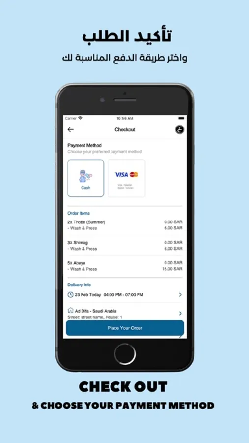 انشئ طلبك وحدد الوقت المناسب لك وسوف يصلك كابتن واشيو إلستالم األمتعه ويمكنك الدفع عبر خيارات آمنه .