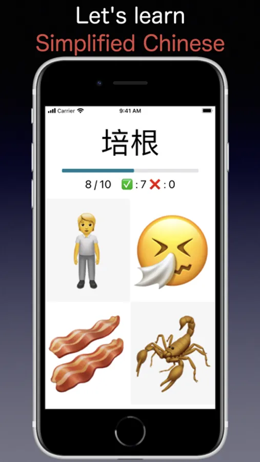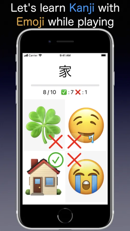 This is a language learning app using Emoji. Let's learn Japanese or Chinese by Emoji matching. 10 questions at a time. If you play repeatedly, you will be able to answer quickly. Japanese also includes Hiragana and Katakana. You can play all for free.