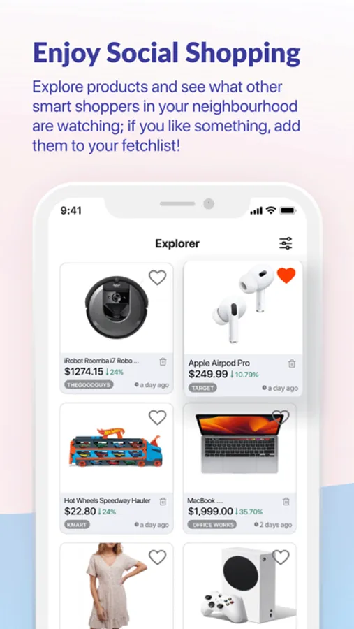 Price drops for your favourite products happen all the time, along with the best prices available at other online stores that you have to spend hours searching for. Wouldn't you want to be the first one to find these amazing deals? Now you can, with Fetchie - your personal smart shopping assistant. You can track price drops on your favourite products, get incredible deals, and save money on your next purchases.