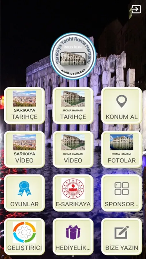 Uygulamada Roma Hamamı tarihçesi, tanıtım videosu, çeşitli oyunlar ve sürprizler bulunmaktadır.