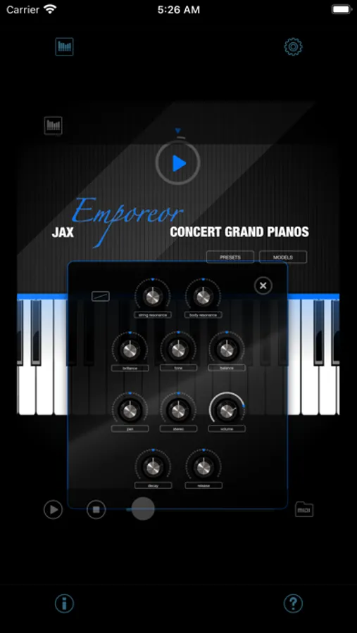 The very special here is optimization for mobile devices, because it is using low resources while it delivers still better sonic qualities than gigabyte heavy sampled pianos, which mostly are not very well suted for mobile devices due to ther enormous usage of disk space and memory. A JAX Concert Grand will merely use around 50 to 100 MB of effective memory with a selected model.