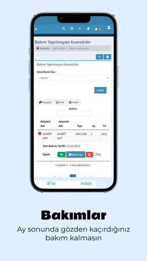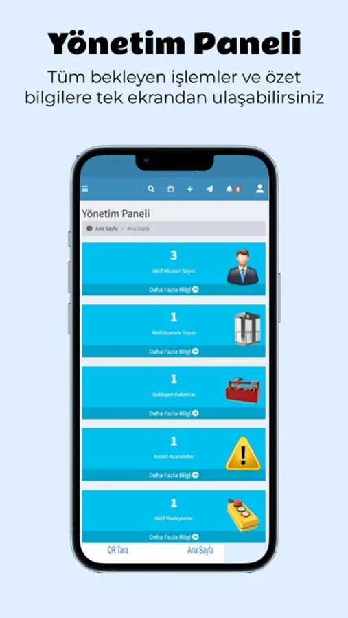 Asansörle ilgili tüm işlemlerinizi tek bir noktadan yönetin.