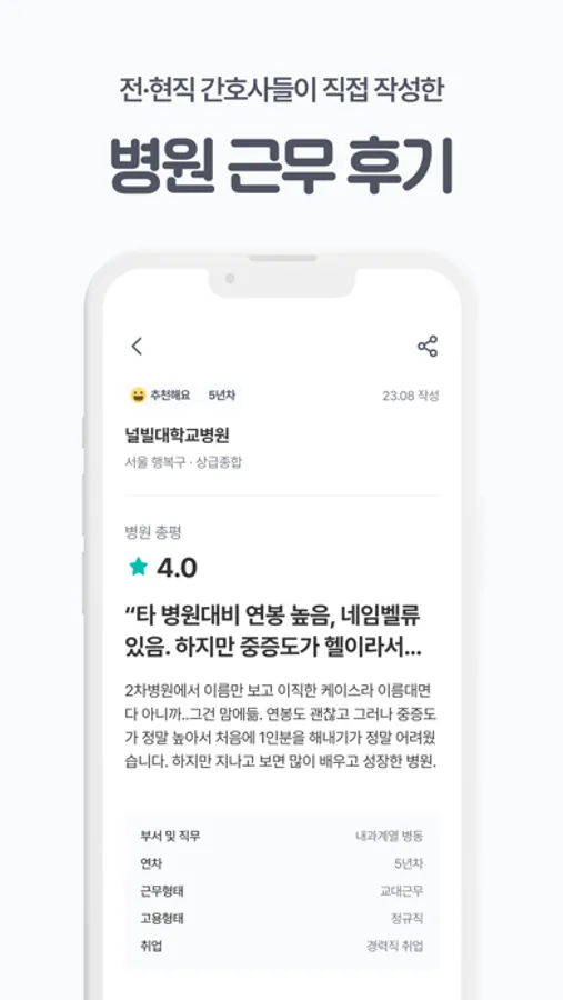 2. 전·현직 간호사들이 직접 작성해서 신뢰도 높은 병원 근무 후기