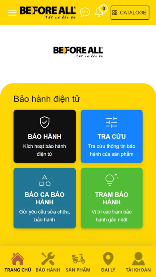 BEFORE ALL là ứng dụng cho phép tra cứu thông tin sản phẩm chính hãng trực tuyến, cho phép tất cả người sử dụng truy cập và tra cứu thông tin về thiết bị được mua, bao gồm các tính năng: