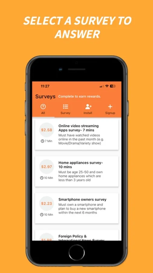 3. Select surveys you want to answer, based on how long they take and their reward