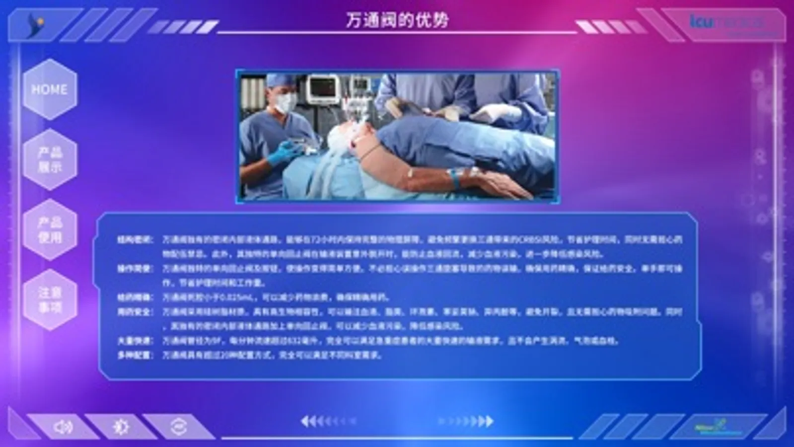 此外,本软件还提供安全注意事项和警告,以确保用户在使用医疗产品“万通阀”时的安全。