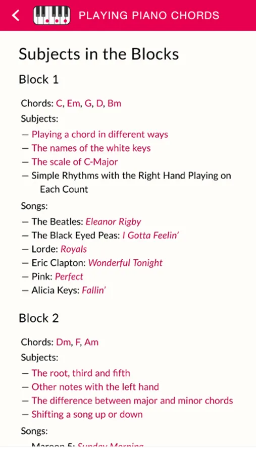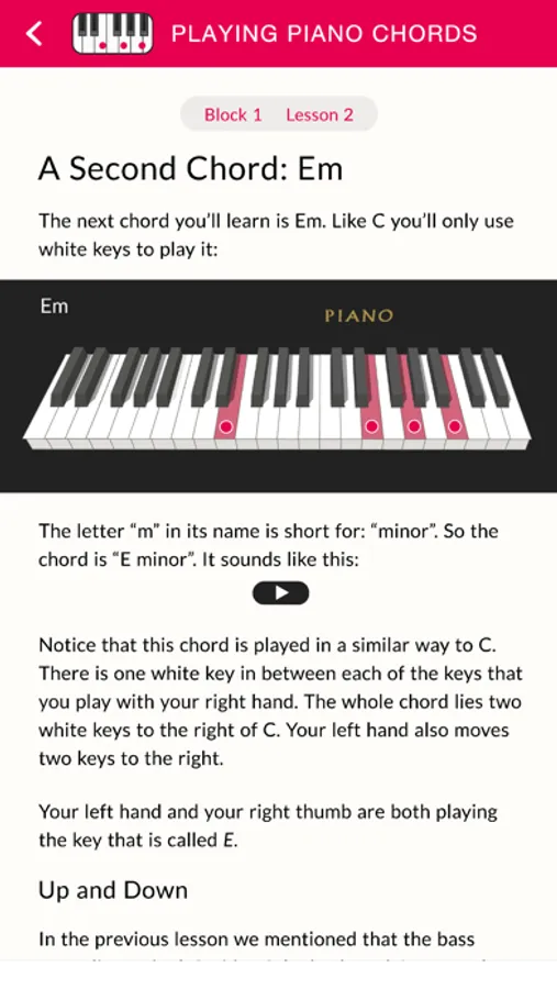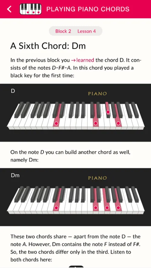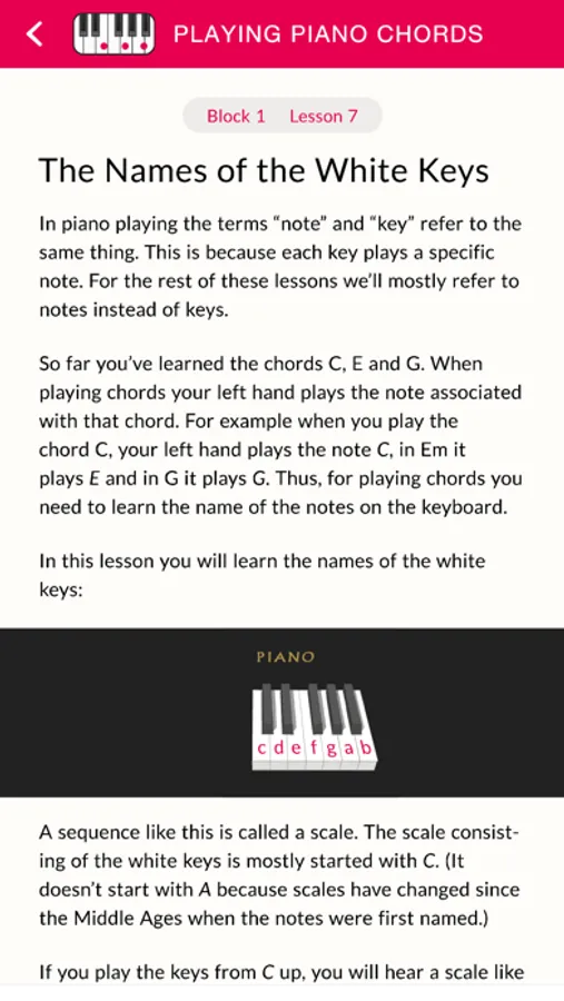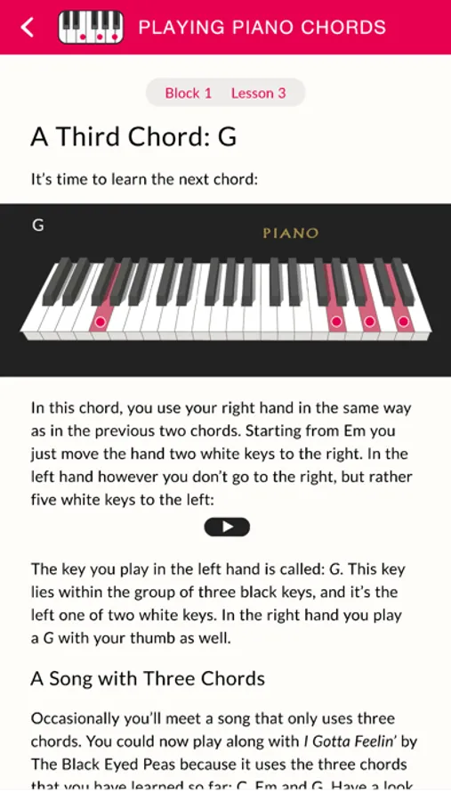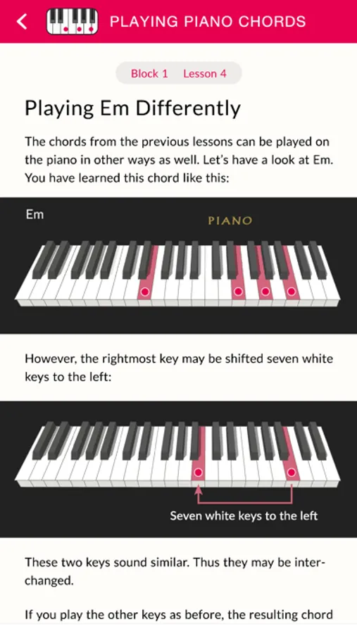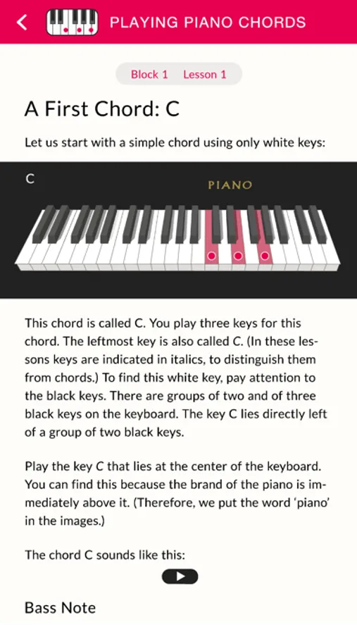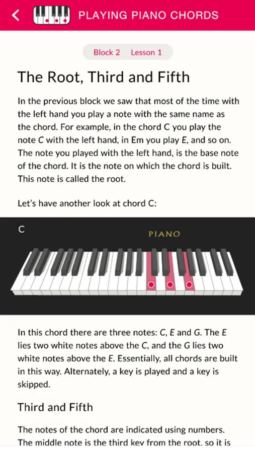 With this app you can learn to accompany songs on the piano in a smooth way. You don’t need to be able to read music for this app. Instead, you learn the chords with images that are easy to understand. You can accompany a first song after half an hour.