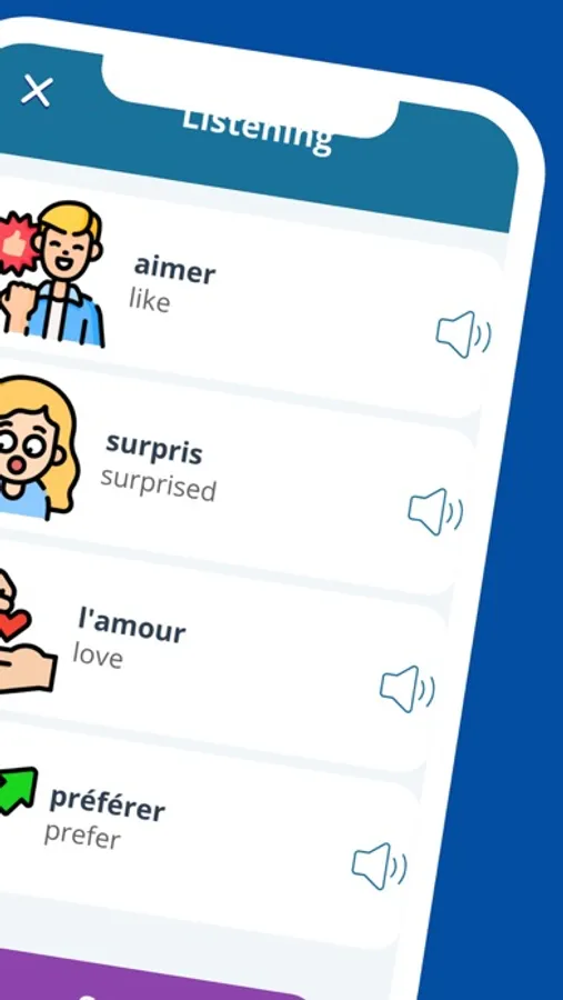 Study French words in the app French for Beginners A1 Level. Studying French has never been so easy and simple!