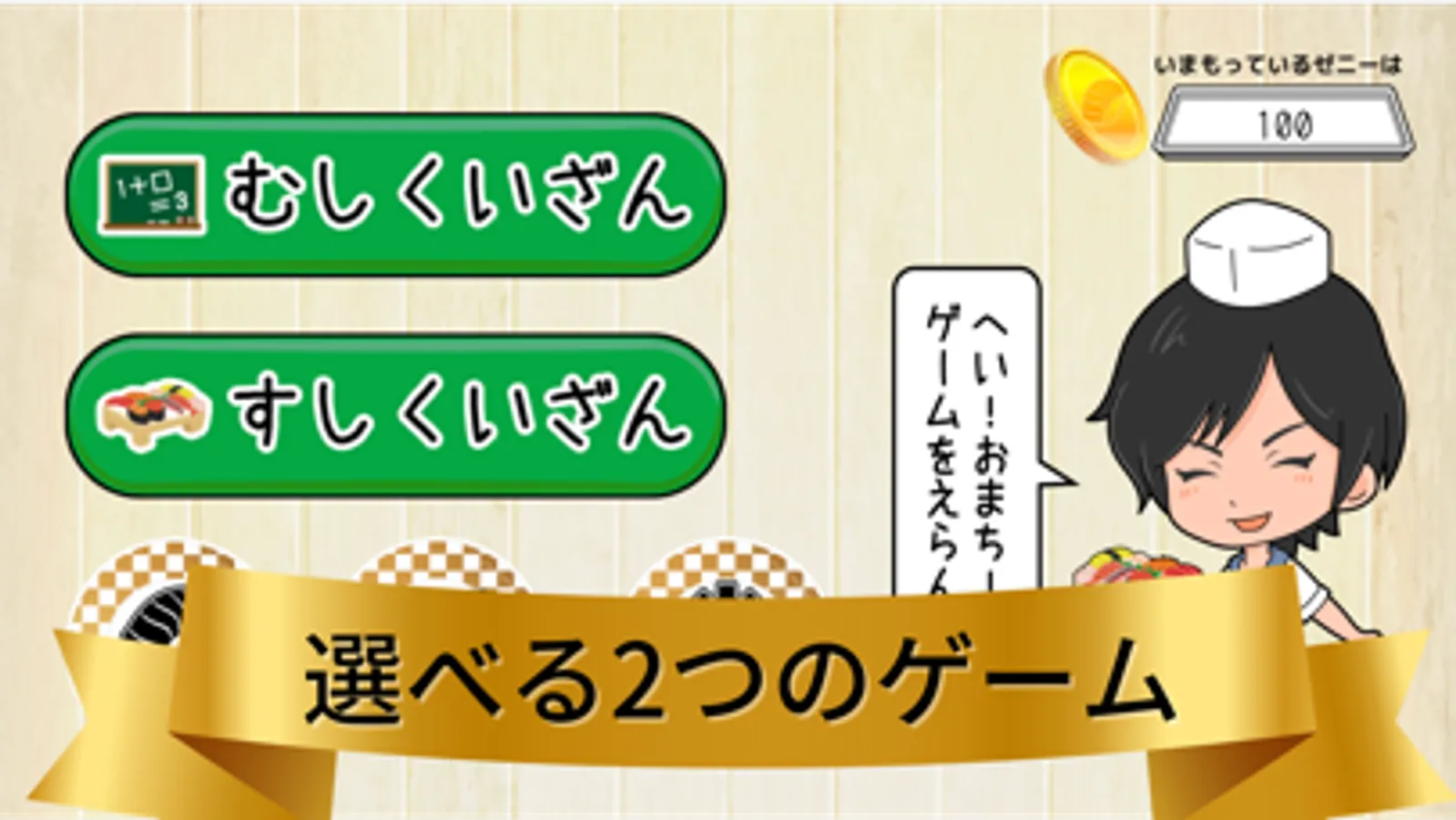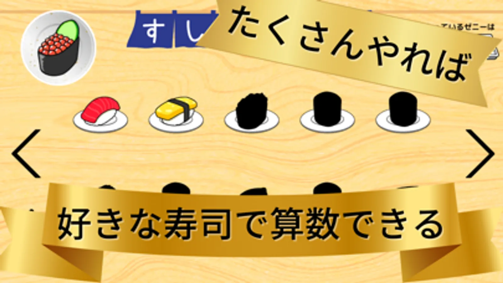 算数を解くたびに、ゲーム内のお金をゲットできるので、お子さんの好きなお寿司を買うことができます。