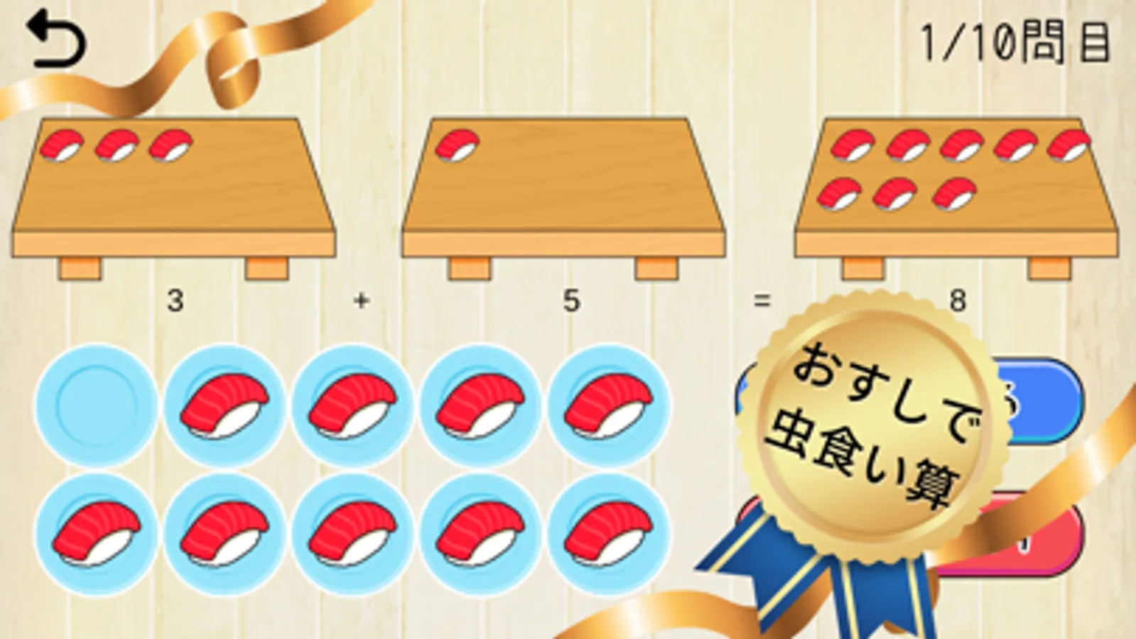 すしくいざんは、お寿司という具体物をタッチして動かしながら、算数ができる楽しいゲームです。