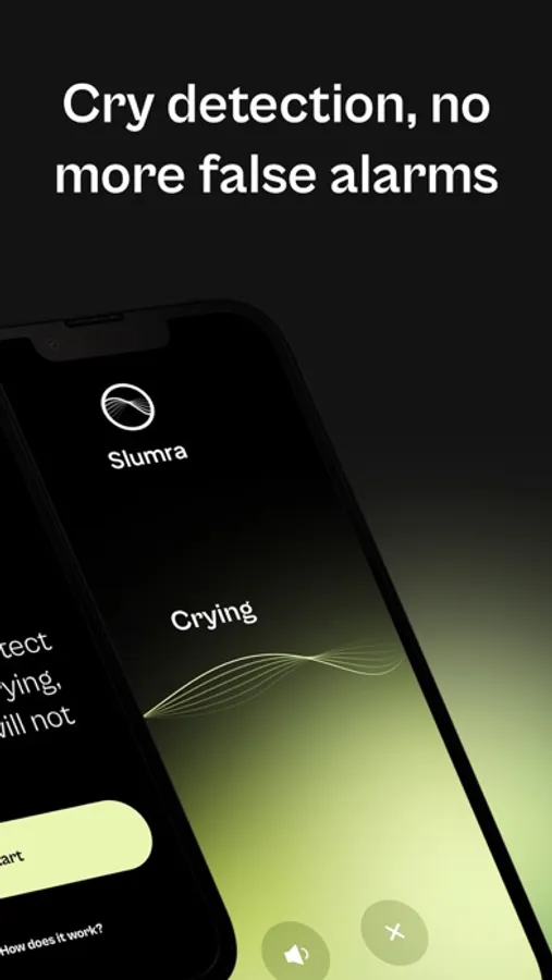 Slumra uses advanced machine learning to detect the sound of your baby's cry and filter out any other surrounding noises, such as a car passing by, people talking or a dog barking. It focuses only on what you need to hear – if your baby is crying.