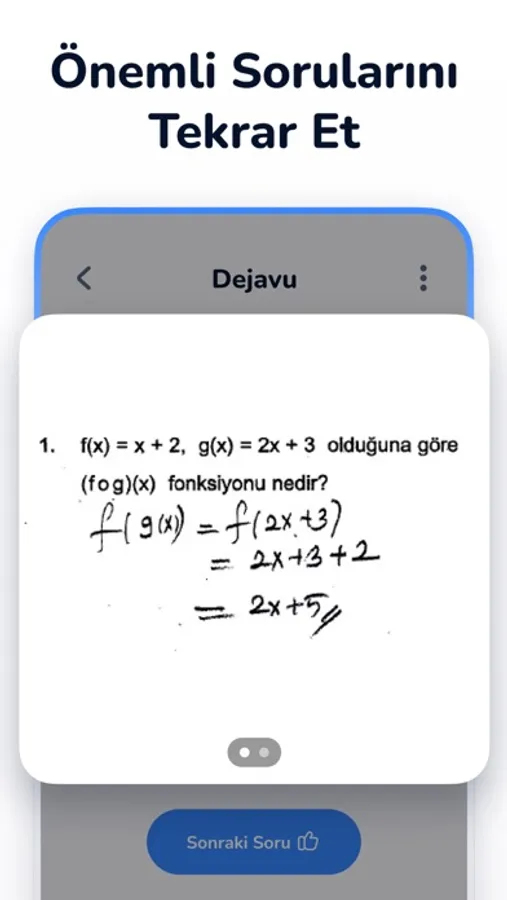 YKS’ye hazırlanırken belki binlerce adet soru çözüyoruz, onlarca sayfa not tutuyoruz fakat birçoğumuz soru çözmekten ve not tutmaktan çok daha önemli bir şeyi atlıyor: Notlarımızı ve gördüğümüz güzel soruları kaydedip tekrar etmek. Yapılan bilimsel araştırmalara göre öğrendiklerimizin %70’ini üzerinden 24 saat geçmeden unutuyoruz. Bu oran 1 ayın sonunda %90’a kadar yaklaşıyor. “DEJAVU” özelliği sayesinde uygulamaya eklediğiniz soru ve notları “Ebbinghaus Tekrar Yöntemi” ile 1-3-7-30-90 günlük süre zarflarında toplamda 5 kez tekrar edeceksiniz ve hatırlama oranınız %100’lere kadar ulaşacak.