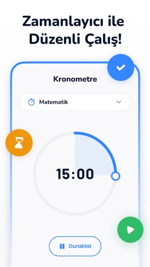 Sınavı kazandıran önemli unsurlardan biri de odaklanmış bir şekilde uzun süreler çalışabilmek. Kronometre özelliği sayesinde ders çalışmayı ertelemeye son verecek ve çok daha uzun süreler odaklanabileceksiniz.