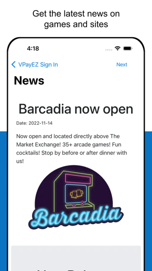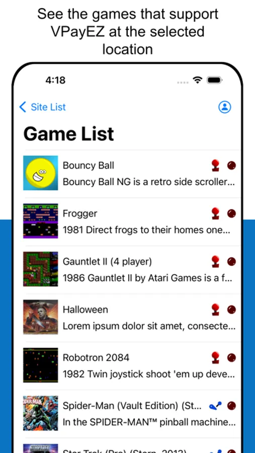 VPayEZ is a cashless payment system utilized in a variety of coin-operated devices, including arcade games, pinball games, pool tables, dart boards, and vending machines. VPayEZ allows the user to purchase "points" via a credit card, that can be used for payment on supported coin-operated devices. Points can be obtained as a one-time purchase, or can optionally auto-replenish.