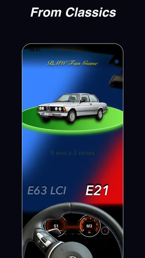 In an easy way, explore the entire BMW range. From the BMW E21 to the latest U11. See your answer stats and share your results on BMW-specific forums and communities.