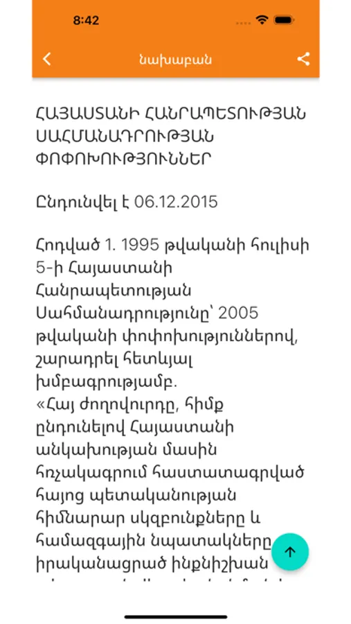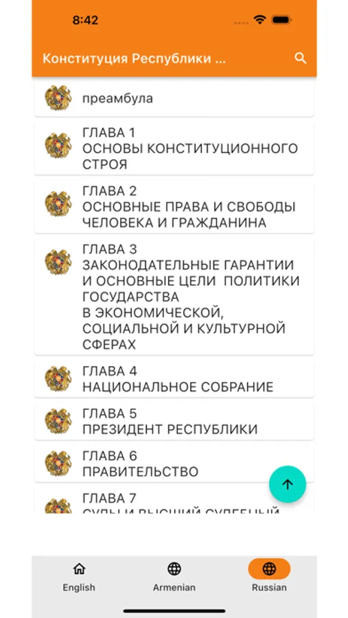This app contains the Constitution of Armenia in English, Armenian and Russian. This consolidated version of the Constitution of Armenia (as amended up to December 6, 2015) in English, Armenian, and Russian.