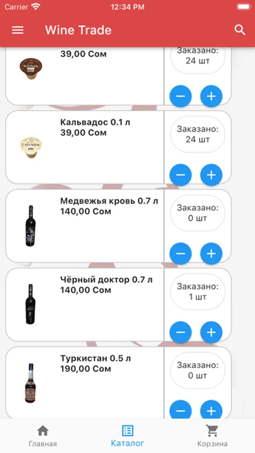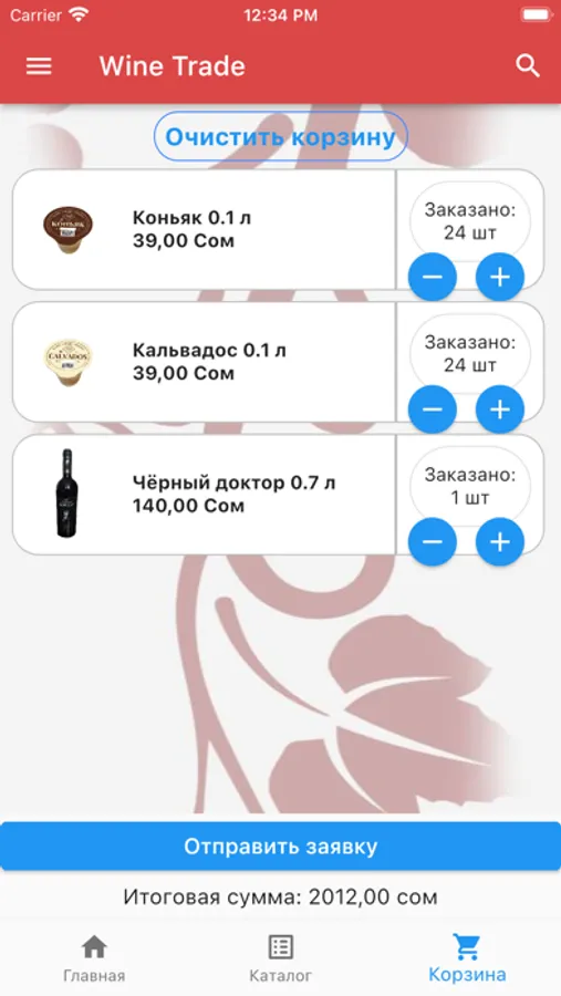 Приложение WineTrade для просмотра полного списка наших товаров и формирования заявок на доставку в Ваш магазин.