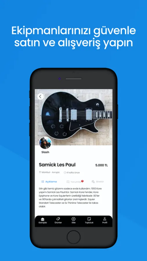 Müzisyen profilinizi oluşturun, ekipmanlarınızı güvenli bir topluluk ortamında satın, güncel müzik ve etkinlik haberlerini takip edin, haber girin, grubunuza yeni müzisyenler bulun.