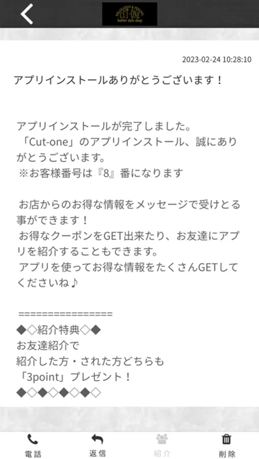 このアプリでは、Cut-oneの最新情報の受け取りや便利な機能を使う事ができます。