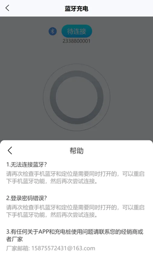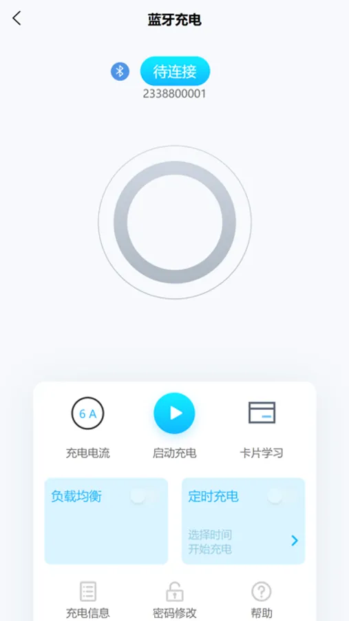 本软件主要用于家用电动汽车智能充电器,同时支持蓝牙充电和扫码充电,可以使用初始密码登录进入主界面查看充电信息。