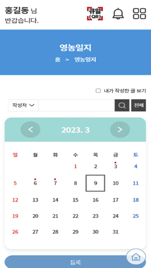 농민의 농작업에 대해 기록을 남기는 영농일지입니다.