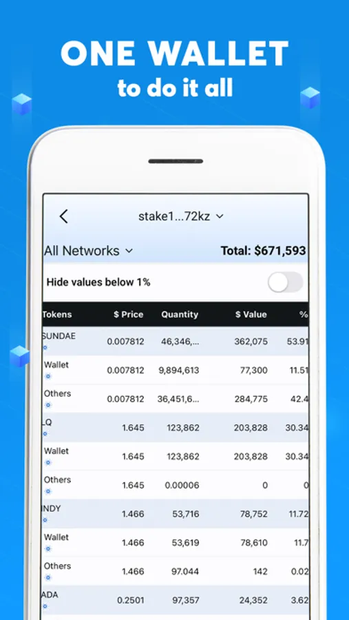 2. With Nio, you will not have to spend time checking different wallets or exchanges to see your assets. You just need to enter the address or scan the QRCode or connect to the Exchange APIs (coming soon)... All your assets will be aggregated and visually displayed according to different investment channels, networks, tokens etc... Nio will help you understand where your risk concentrations are!