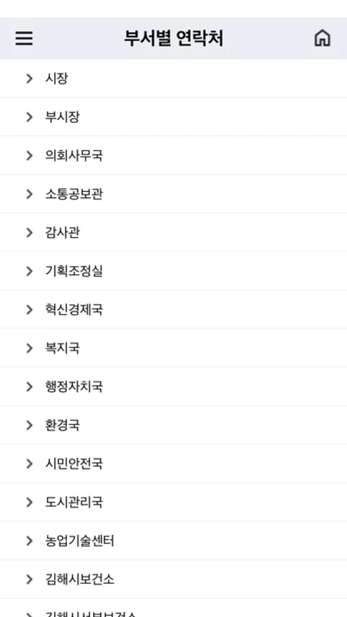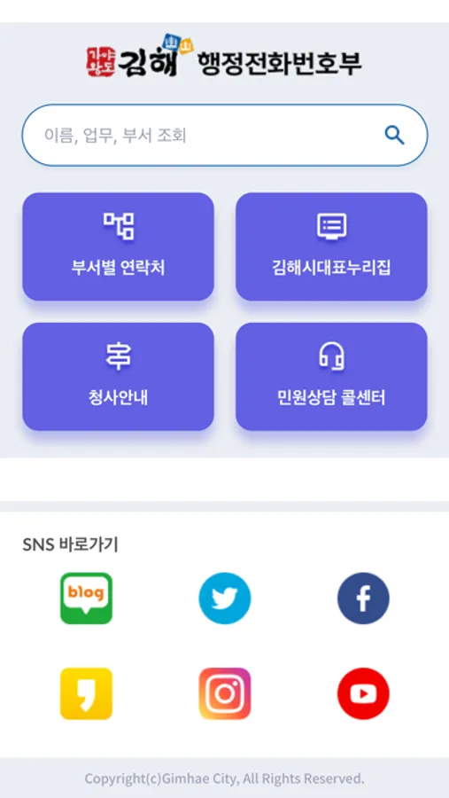 김해시 시민들이 편리하게 언제 어디에서나 시청 행정전화번호를 검색하여 전화할 수 있게 구성되어 있습니다.