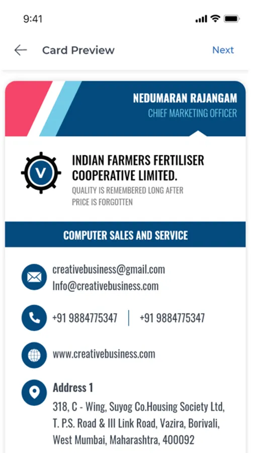which let users to create, share, store virtual visiting cards (or) Business cards on their