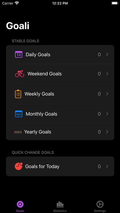Goalie is a simple, reliable app that helps you set your time-based goals (daily, weekend, weekly, monthly, yearly and quick goals), and track your progress through statistics.