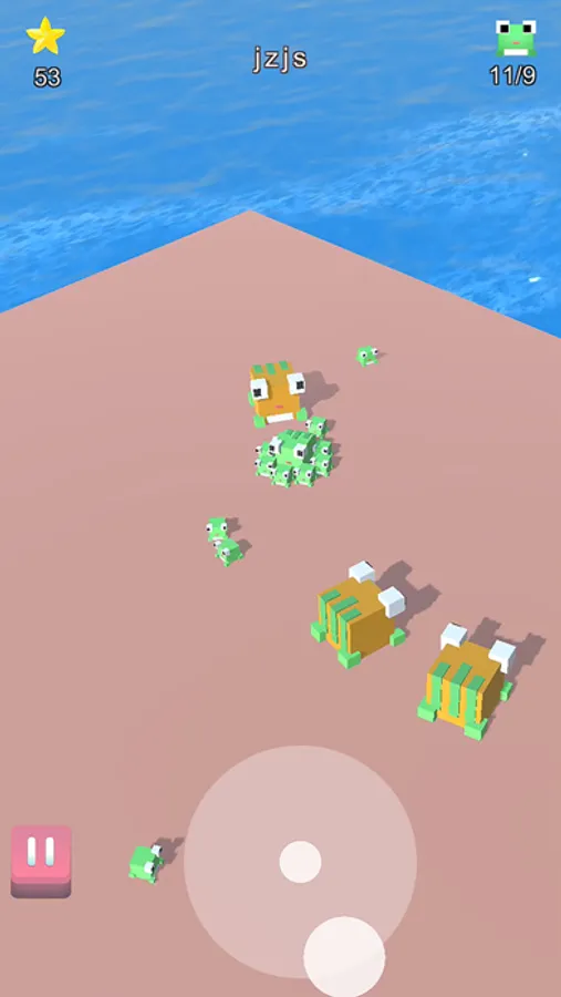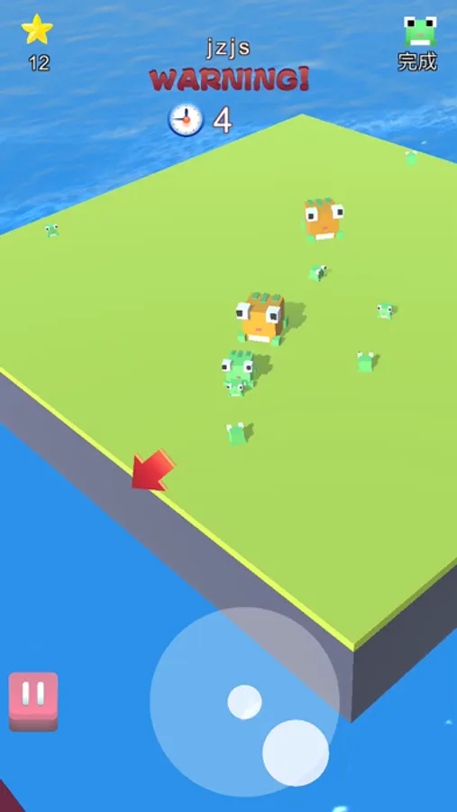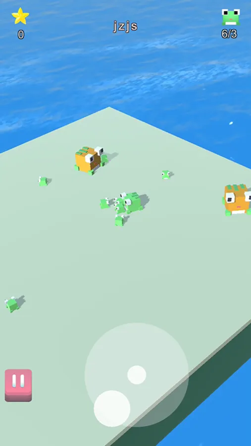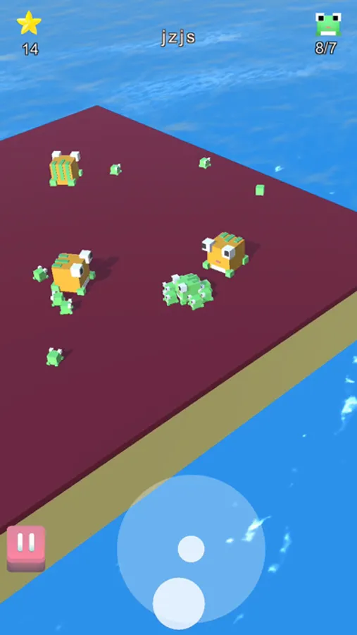 *Press and hold the screen, slide the steering wheel, let the big frog move to touch other small frogs.