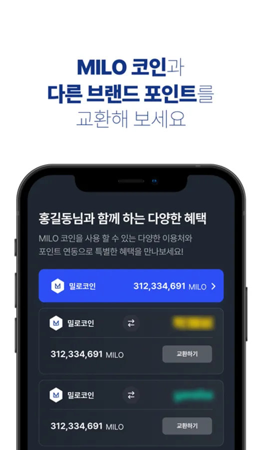 - 연동된 브랜드에서 수집한 포인트를 밀로코인으로 전환해 현금처럼 사용하실 수도 있습니다.