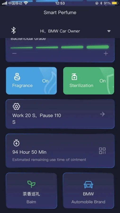 The vehicle fragrance system can be opened or closed through the vehicle system, voice control and APP to adjust the fragrance concentration and working mode