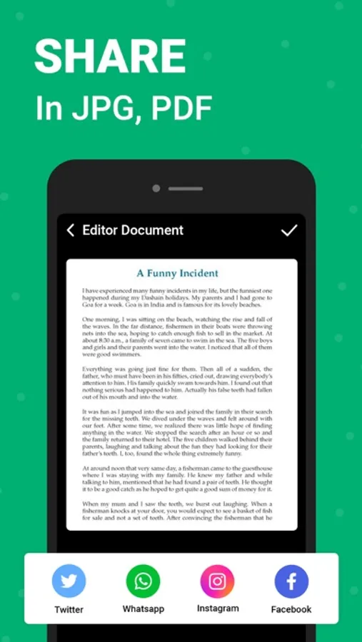 • Free document scanner app for phone free download share Docx in PDF or JPEG format with your contacts.