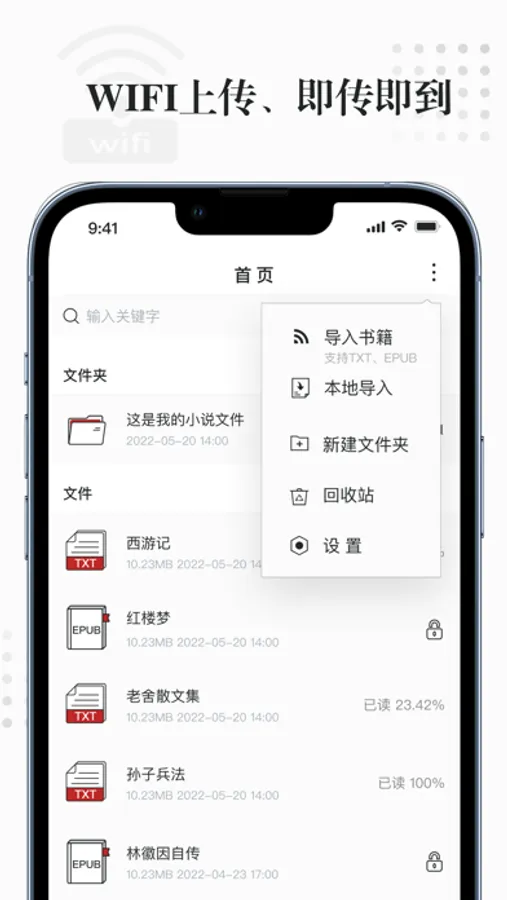 ● wifi上传小说电脑文件,即传即到,无需等待。