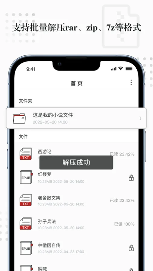 ●自动解压,支持批量解压rar、zip、7z等格式。