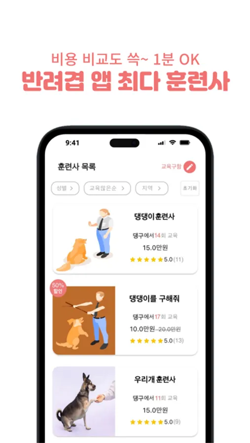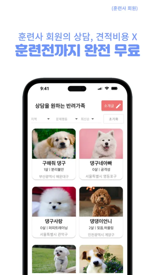- 댕댕이를 구해줘는 반려견 방문훈련이 성사되기 전까지 모든 것이 무료예요!
