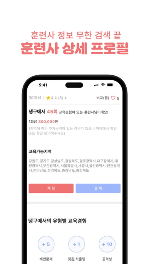 - 글을 작성해서 채팅을 받거나, 훈련사님께 직접 채팅을 걸 수 있어요