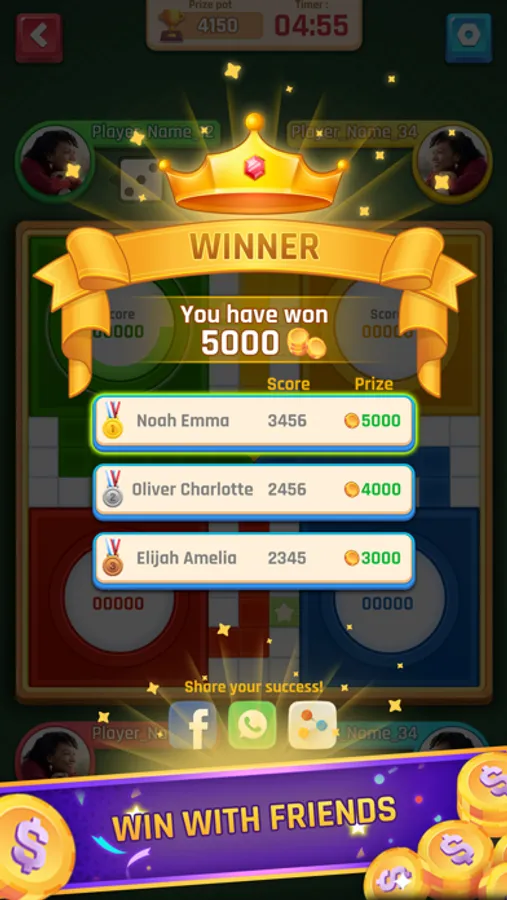 Ludo Brawl is an online version of the classic ludo board game. To play you need to choose the format of the game (1v/s1, 1 winner, 2 winners, 3 winners) and the type of tournament (Entry fee or free game). The objective of the game is pretty straightforward. Each player gets 4 tokens to move around the board in a clockwise direction, up the home column, and into the home area. However, to win, you do not need to take all your tokens inside the home area. You win by earning maximum points! So, strategize your moves carefully, and don't forget you are on a timer!