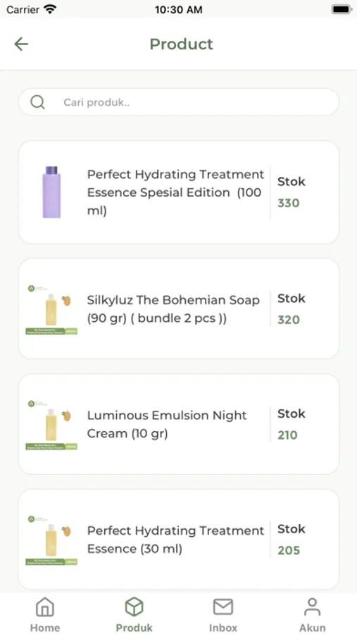 - Melihat daftar produk dan masing-masing stok yang dijual.